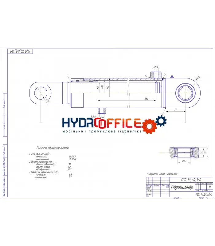 Гідроциліндр 70/60/380: