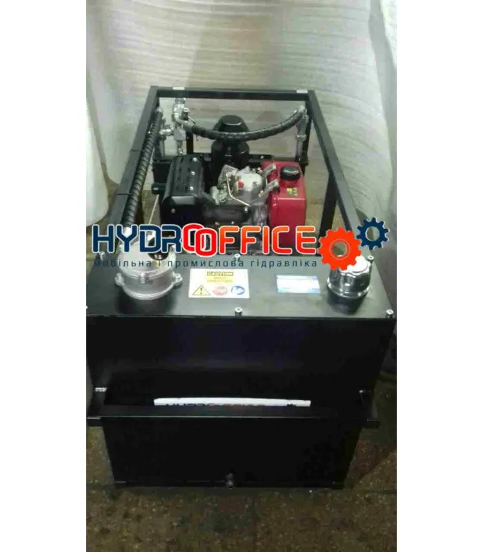 Агрегат оснащено потужним дизельним двигуном 14 к.с. ,гідравлічним запобіжним клапаном для виключення можливості перевантаження системи, також манометром для контролю тиску робочої рідини.